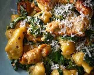Instructions to make to make Homemade Gnocchi With Chicken Sausages In A Creamy Spinach Sauce