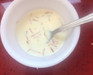 - Put on the rest of the rice over & sprinkle over the saffron milk... cover the rest of the onions and add coriander