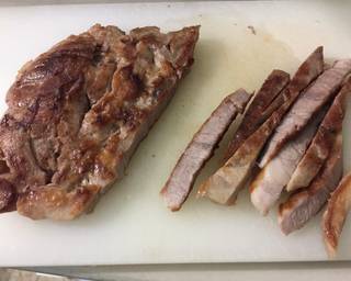 - Pan fry the lamb then set aside to rest then slice it up