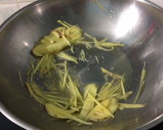 - With oil pan fry the ginger till it’s lightly brown then drain all the oil aside