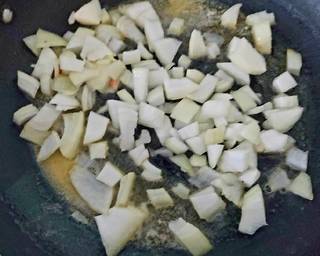 - Add the butter to a frying pan and when heated add the onions fry for 1 minute