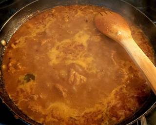 - After 20 minutes start to make the rice and add curried pork to a bowl to serve with Naan bread and boiled Rice