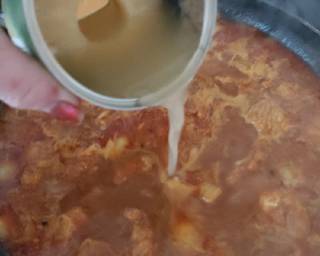 - Then add the Apple sauce, pineapple sauce and tomato pureè also the curry leaves stir all in then add the chicken stock crumble in. Let it come to the boil then simmer stirring occasionally. For 20 minutes