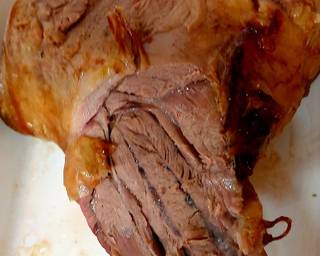 - Add to a preheated oven 160°C for 1 +1/2 hours basting the lamb with the juices in the middle of cooking.
