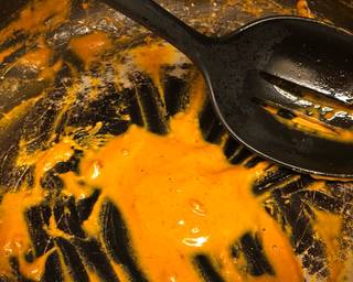 - Remove the sausage from the pan with a slotted spoon saving the oil. Add the flour to the oil to make a roux. Cook to darken the roux.