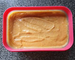 - Next day blend the cold stew with the Pork belly slices within a Nutri Ninja fast Blender etc. Add some cold water too dilute and make it easier to blend and then store the baby food mixed stew in a Plastic Container with lid.