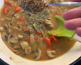 - Throw in the thyme and mustard stir again.