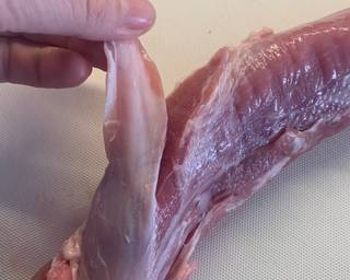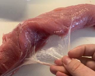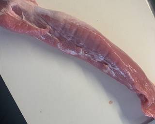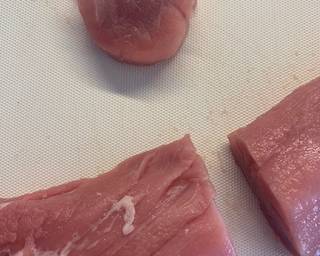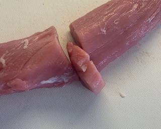- Remove and fat from the pork fillet.