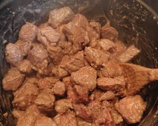 - Add the beef to the hot pot and brown on all sides, about 5-7 minutes.