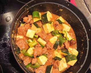 - Add the courgettes and peppers 15 minutes before removing the pot from the heat.