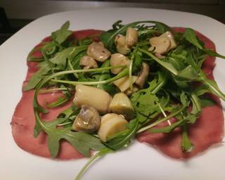 Hello everybody, it's John, welcome to my recipe page. Today, we're going to make a special dish, Bresaola and rocket salad with my mushrooms in oil. It is one of my favorites. For mine, I'm gonna make it a little bit unique. This is gonna smell and look delicious.