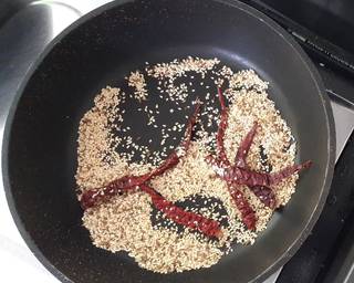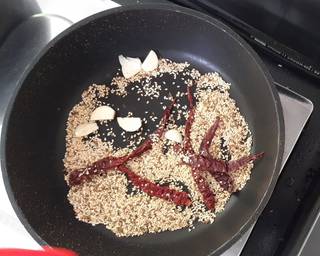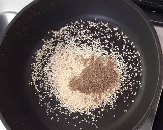 - Heat the pan and dry roasting sesame seeds and cumin till it turns golden.
