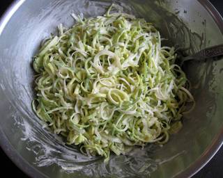 - To make batter, mix Flour, Water, Eggs, Salt and Chicken Powder (OR Stock Powder). You may wish to add some Pepper as well. *Note: Reduce the amount of Batter if the amount of Leek is smaller. It should be just enough to combine sliced Leek.