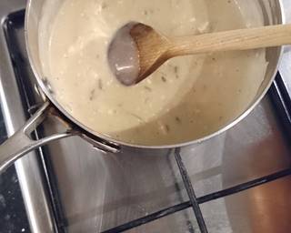 - Mix the condensed mushroom soup, single cream, chopped onion and add 1/2 teaspoon of Worcestershire sauce