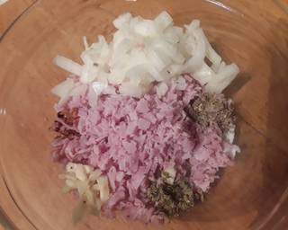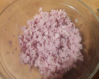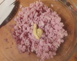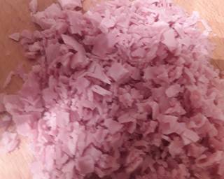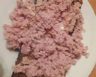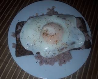 This is a small breakfast or evening treat. Traditionally in Germany it is made with cooked smoked cured bacon. I used lean cooked smoked ham instead. I think all cooked smoked meats would work with this. It is called ' a little hack' or as we say in Germany ' Kleines Hackerl'. It is a very simple dish that I hope you will enjoy. Add HP, BBQ or any other sauce or 1/2 a very finely chopped pickled gherkin if you like #NewYearNewYou